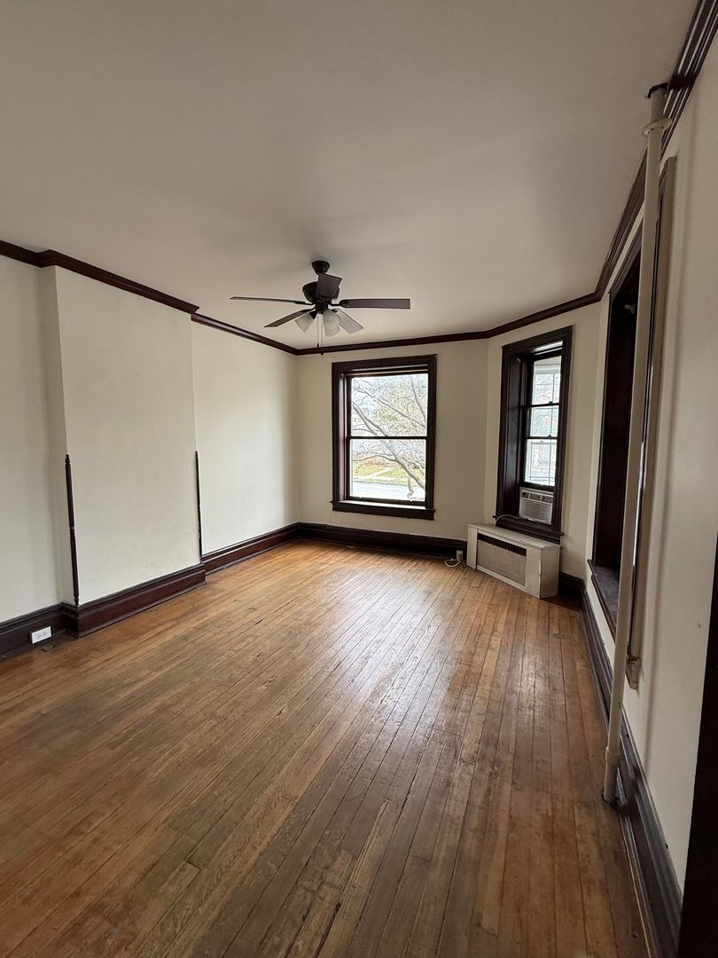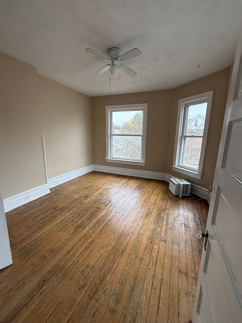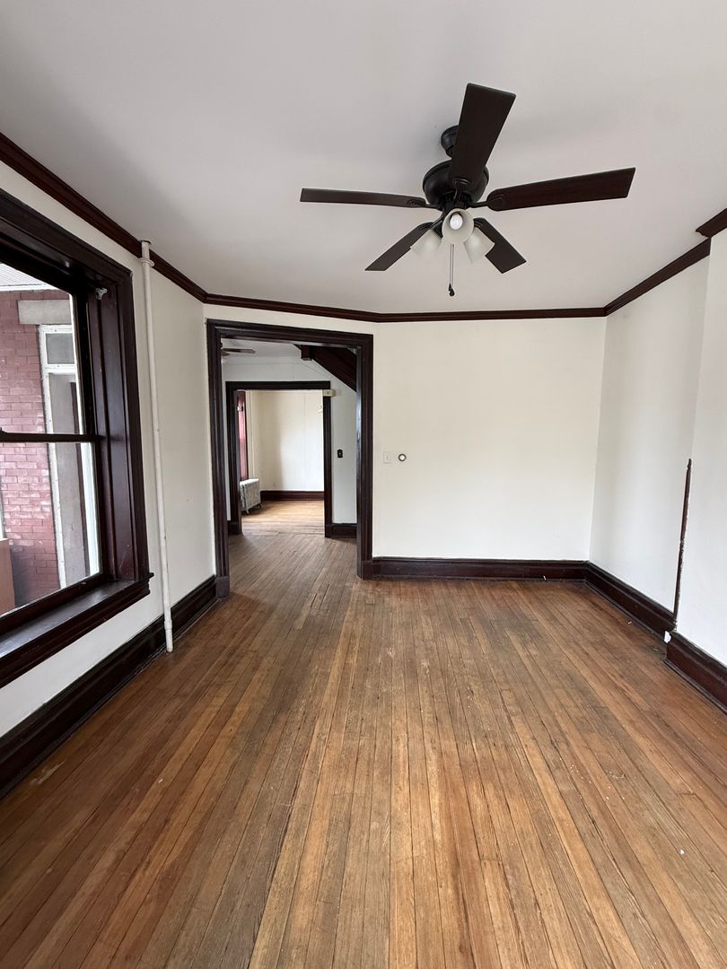 Welcome to 49 W. Commerce Street, a three-story Beautiful colonial style single-family home in Chambersburg, PA 17201. This spacious residence offers five bedrooms (3 on the second floor, 2 on the third floor) two bathrooms, and plenty of storage including basement space, a kitchen pantry, and lots of closet space. Wood floors and ceiling fans add character and comfort throughout. The enclosed front porch welcomes you into the home; the property includes a detached carport and is served by public water and sewer. Equipped with a refrigerator and stove/range, and heated by gas, the home is located near Wilson College and is within the Chambersburg Area School District. No pets and no smoking allowed.